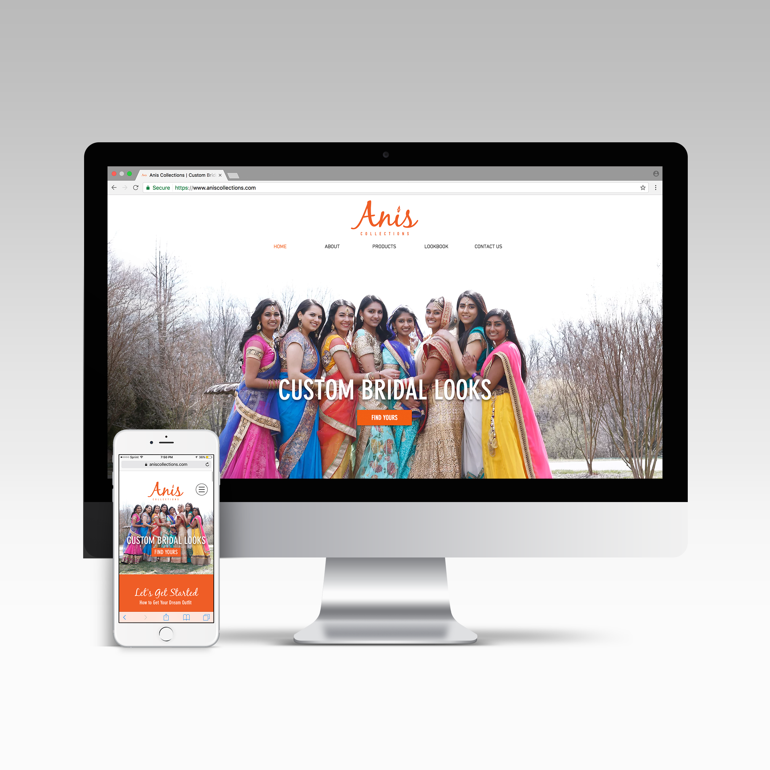 This web design for Anis Collections, an online boutique for Indian Bridal wear, was created for a young entrepreneur looking to get a web presence for her new business of selling South Asian clothing. My goal with this design was to create a modern look for a younger audience that uses bright colors and dynamic photography.